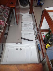 L’ensemble des surfaces moule est recouverte d’un scotch Téflon qui garanti le démoulage des demi coques. En effet, pour des raisons de gain de poids, les coques ne reçoivent pas de Gel Coat.